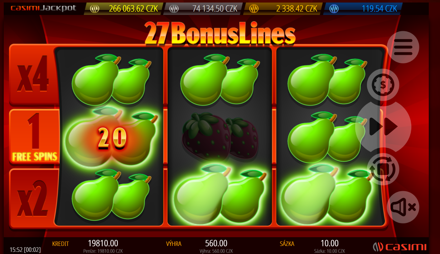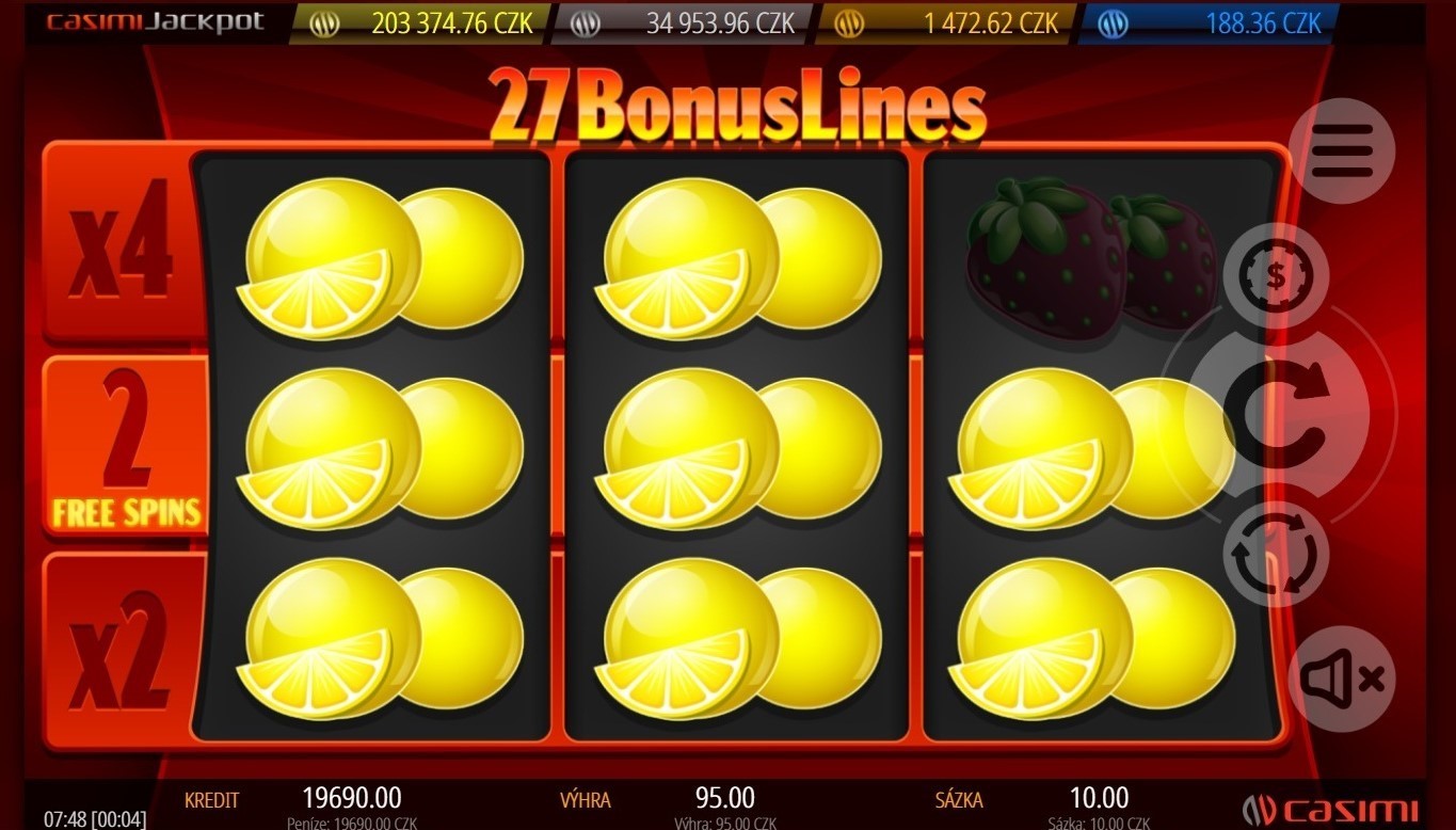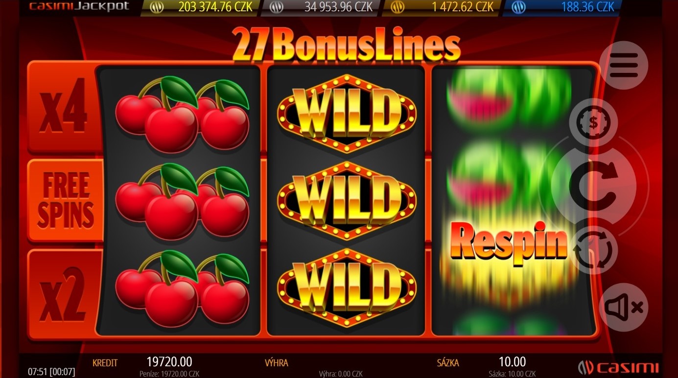 Co kdyby výherní linie uměly víc, než jen vyplácet výhry? Ve hracím automatu 27 Bonus Lines od Casimi není linie jako linie!