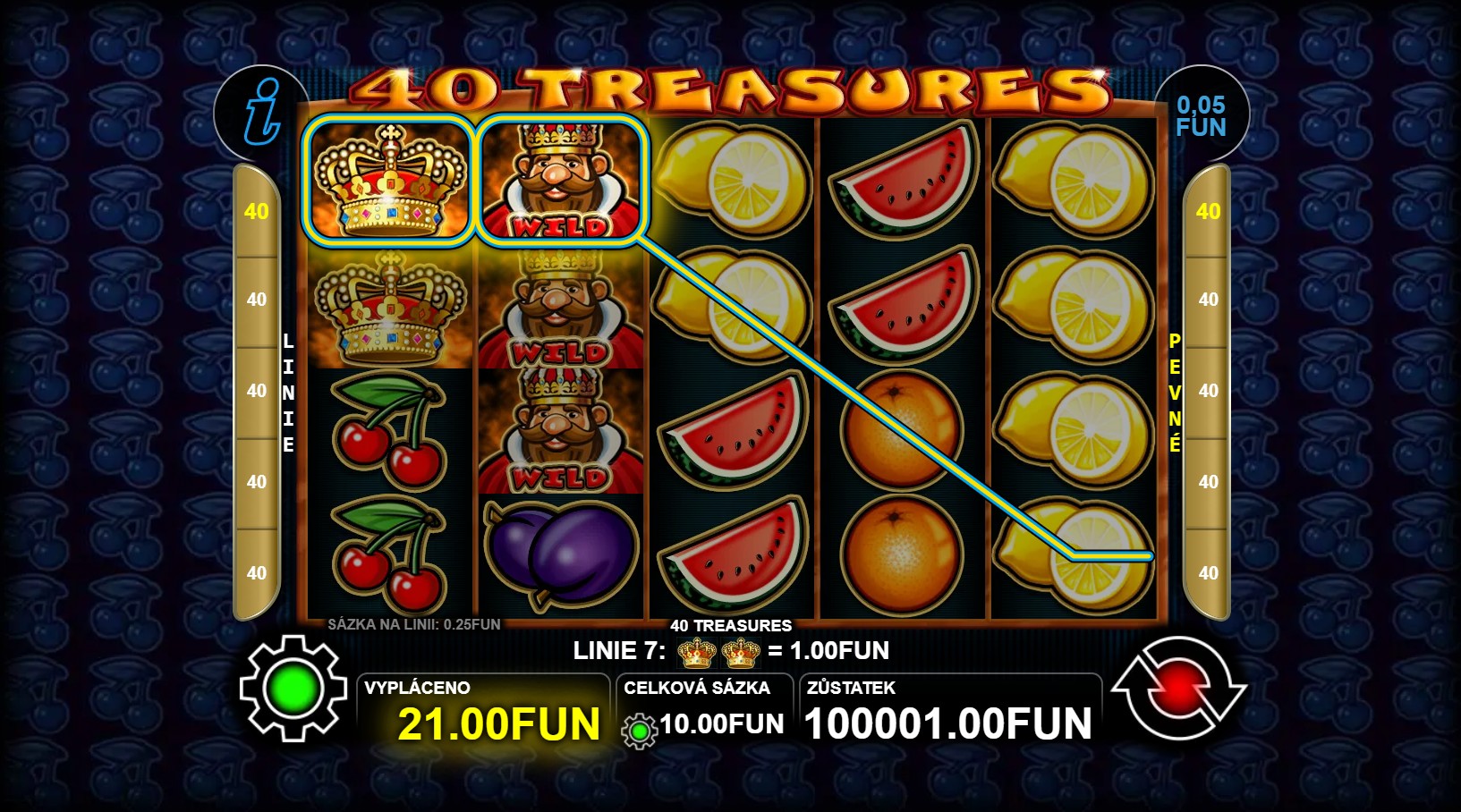 Ta pravá královská trefa ale nastane, když trefíte plátno královských korun. To vaši sázku znásobí x1000, což už je opravdu luxusní výhra!