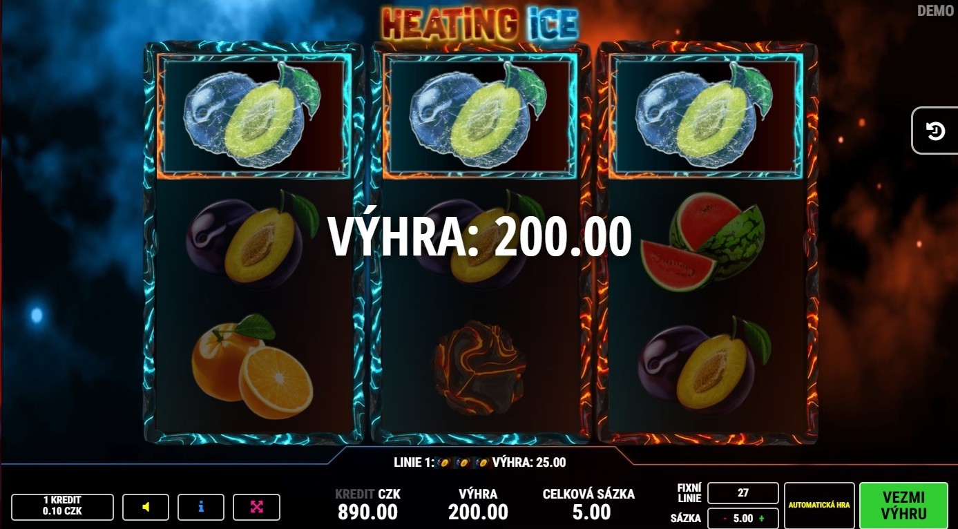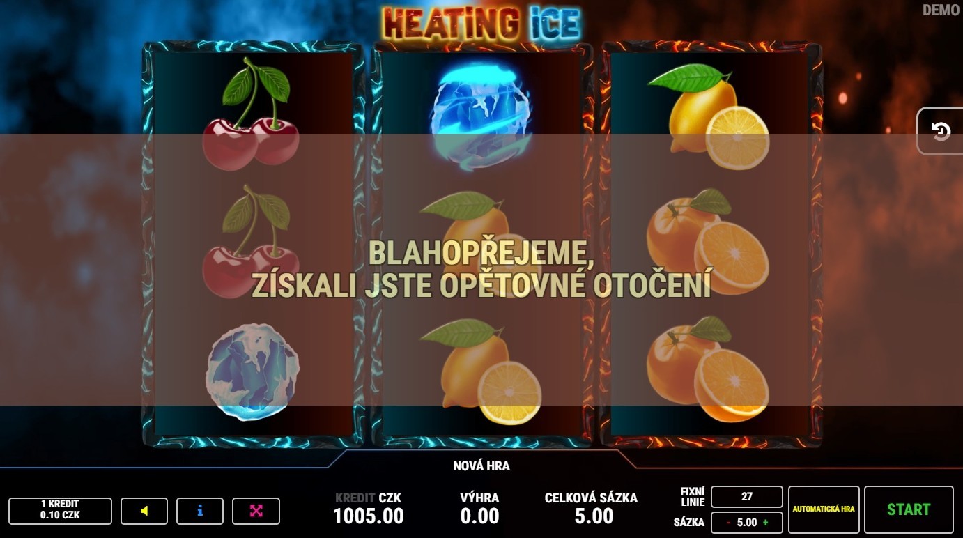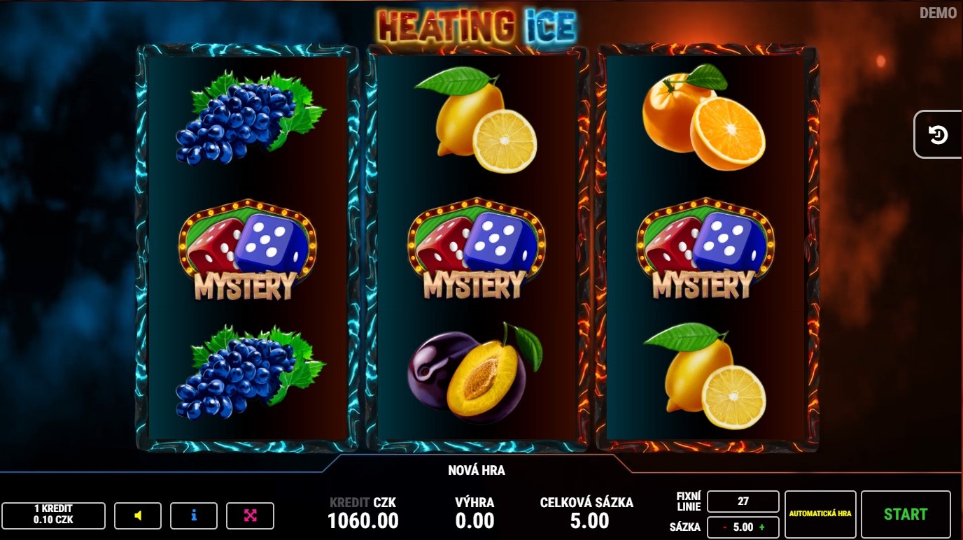 Je na válcích hracího online automatu Heating Ice vedro nebo snad mrzne? Se speciálními bonusovými symboly ohně a ledu se může stát cokoli!