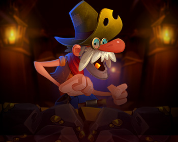 V ústí šachty se točí 5 válců s 20 výherními řadami. Na nich najdeš kromě klasických hodnot J, Q, K a esa také symboly, bez kterých se neobejde žádná těžba – krumpáče, petrolejové lampy, vozíky narvané zlatem a také portrét hlavního hrdiny slotu. Ten stojí i vedle válců, a i když vypadá celkem vysloužile, pořád má v rukávu triky, které mohou vylepšit jakoukoli točku.