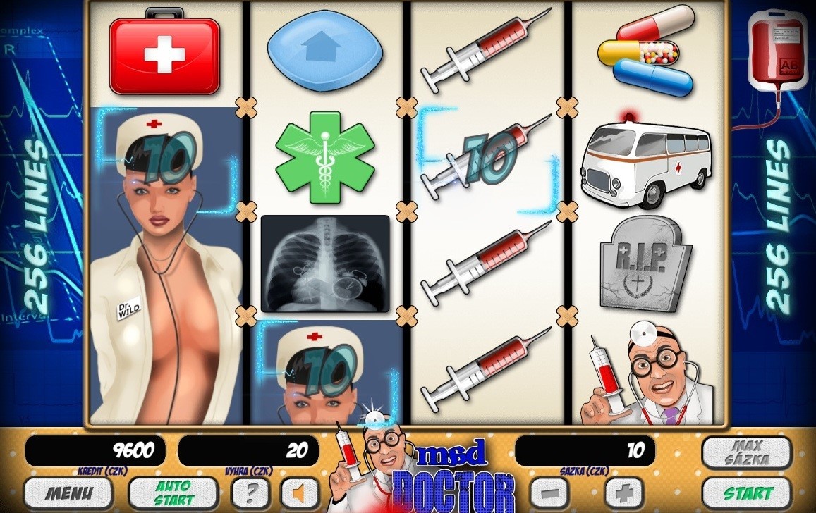 V ordinaci výherního automatu najdete 4 válce a dokonce 256 výherních linií, takže ať už vás trápí jakákoliv rýmička, Mad Doctor na ni zaručeně má lék.