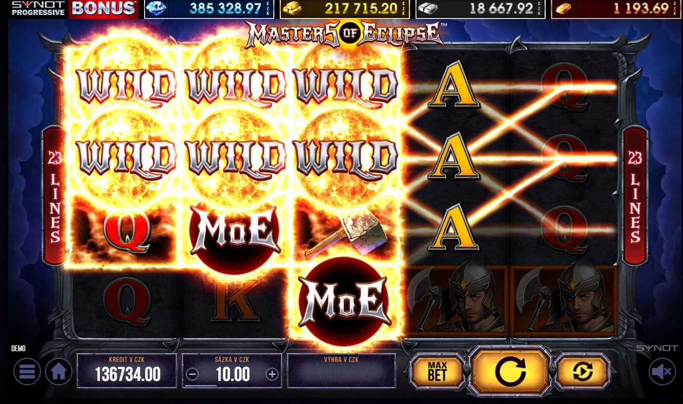 Co se stane, když se setká sluneční wild se symbolem zatmění? V online automatu Masters of Eclipse od výrobce Synot Games se zrodí masivní blok wildů s rozměry 3x3 pozice, který přináší epické výhry!