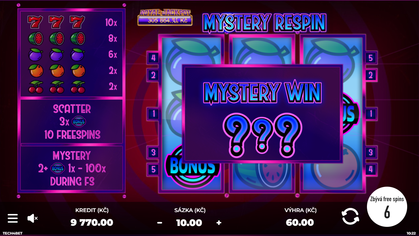 Nenechte se klamat retro vzhledem, ovocný hrací automat Mystery Respin od výrobce Tech4Bet je horká novinka nabitá akcí!
