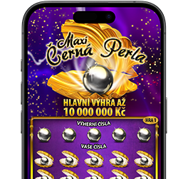 Zastavte se na chvíli a užijte si příjemné napětí se stíracím losem Maxi Černá perla. Každá je jedinečná, ale Maxi Černá perla může být i desetimilionová. Přesně taková je totiž její hlavní výhra. Pokud najdete symbol černé perly, vyhráváte dokonce pětinásobek částky uvedené pod ní. Uděláte radost sobě nebo někomu blízkému?