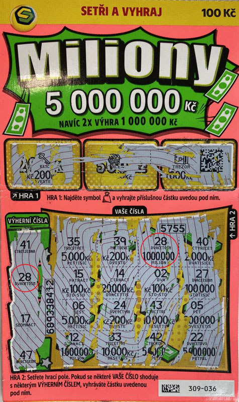 Napětí při stírání dosáhlo vrcholu, když výherní číslo 28 odhalilo skvostnou částku 1 000 000 Kč! Ten moment, kdy se objevila tato fantastická výhra, musel být nezapomenutelný. Gratulujeme šťastnému výherci k milionové radosti a přejeme, aby si tuto výhru užil podle svých největších snů!