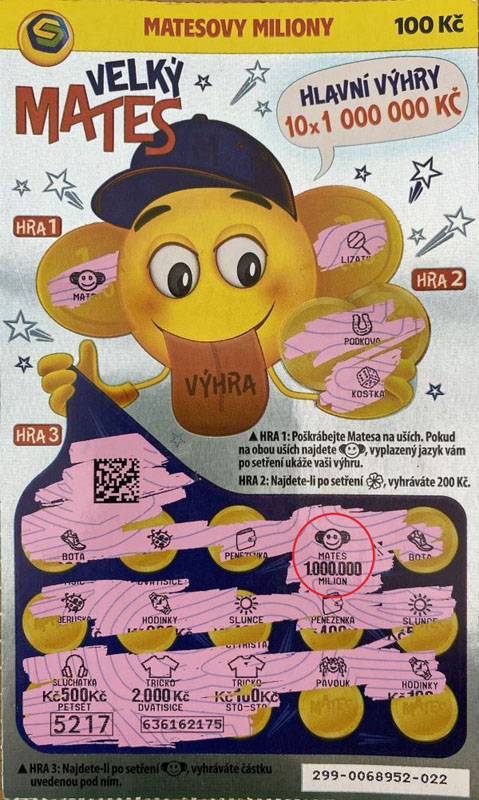 Mates tentokrát opravdu překvapil! Výherní „Mates“ skrýval pod sebou hlavní výhru – celých 1 000 000 Kč. Stačil jeden správný tah mincí a tato pohádková výhra se stala skutečností. Představte si tu radost, když se Mates usmál výherci milionovou částkou. Gratulujeme a přejeme mnoho štěstí i dál!