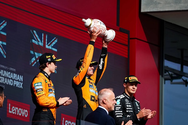 Maďarský Hungaroring je známý jako technicky náročná trať, kde se šance vítězit střídají mezi stájemi. Letos však patřil oranžové barvě McLaren F1 Teamu. Lando Norris zde oslavil své první vítězství na této trati a páté v aktuální sezóně. V těsném závěru uhájil vedení před týmovým kolegou Oscarem Piastrim, který na něj v celkovém pořadí drží náskok devíti bodů. Bylo to napínavé až do poslední zatáčky – a naši kolegové byli přímo u toho.